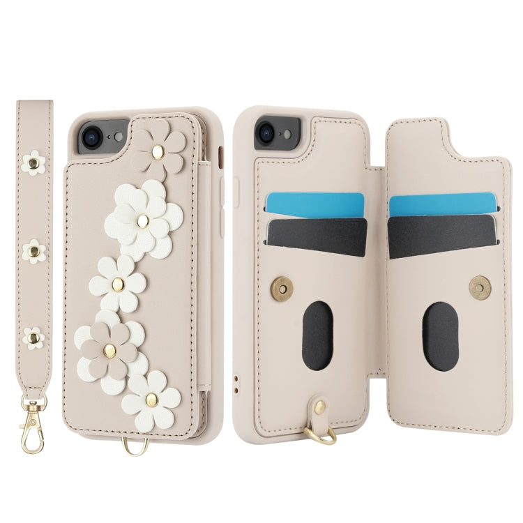 Crossbody Flower Pattern Leather Phone Case, For iPhone SE 2022 / SE 2020, For iPhone 13 Pro Max, For iPhone 13 Pro, For iPhone 12 / 12 Pro