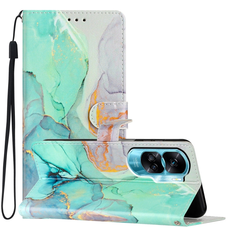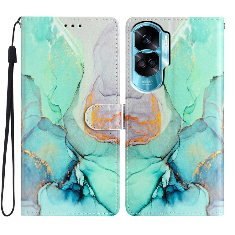 For Honor 90 Lite Colored Drawing Leather Phone Case(Green Marble)