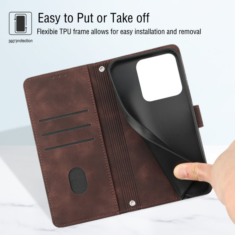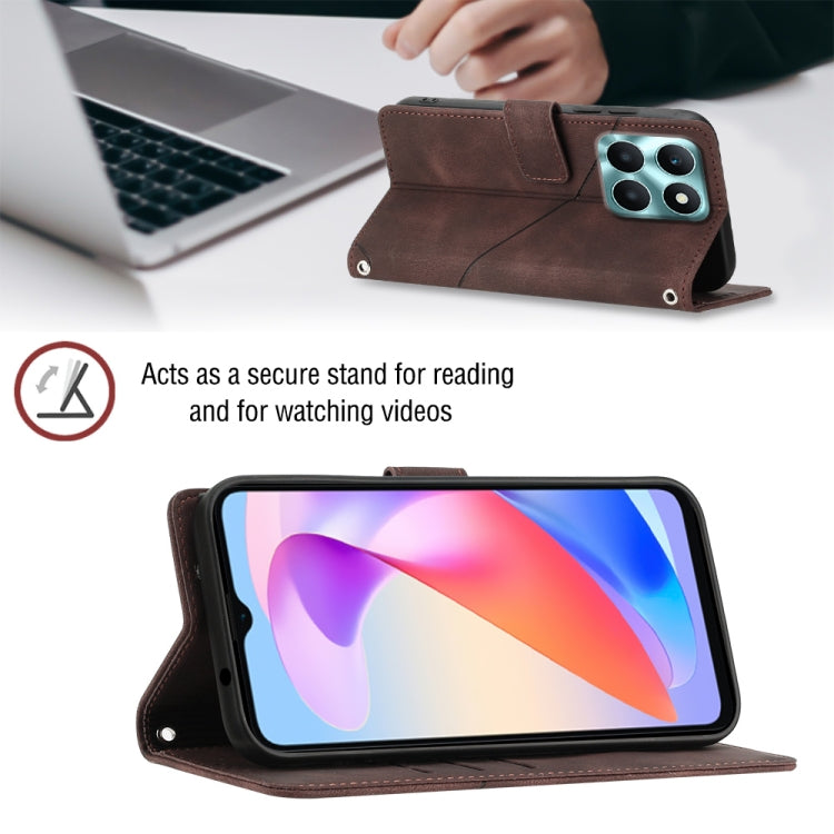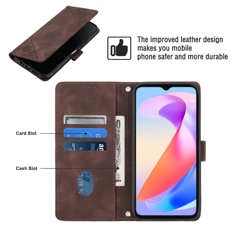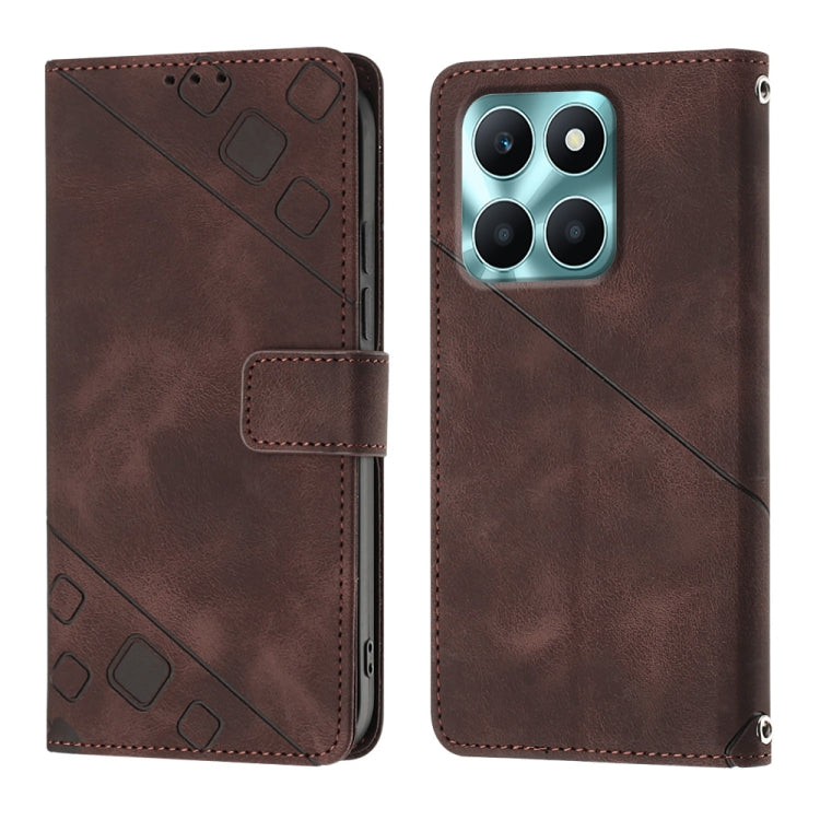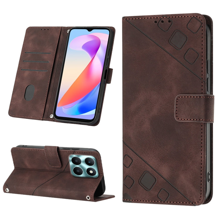 For Honor X6a Skin-feel Embossed Leather Phone Case(Brown)