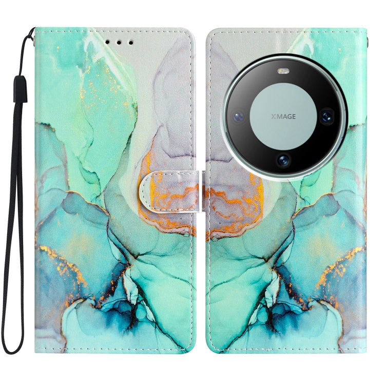 For Huawei Mate 60 Colored Drawing Leather Phone Case(Green Marble)