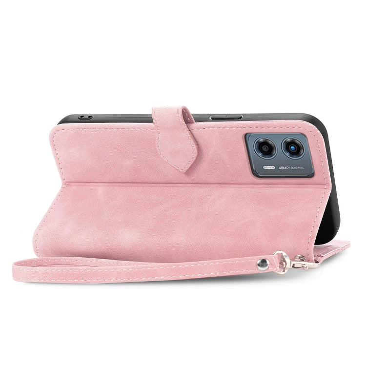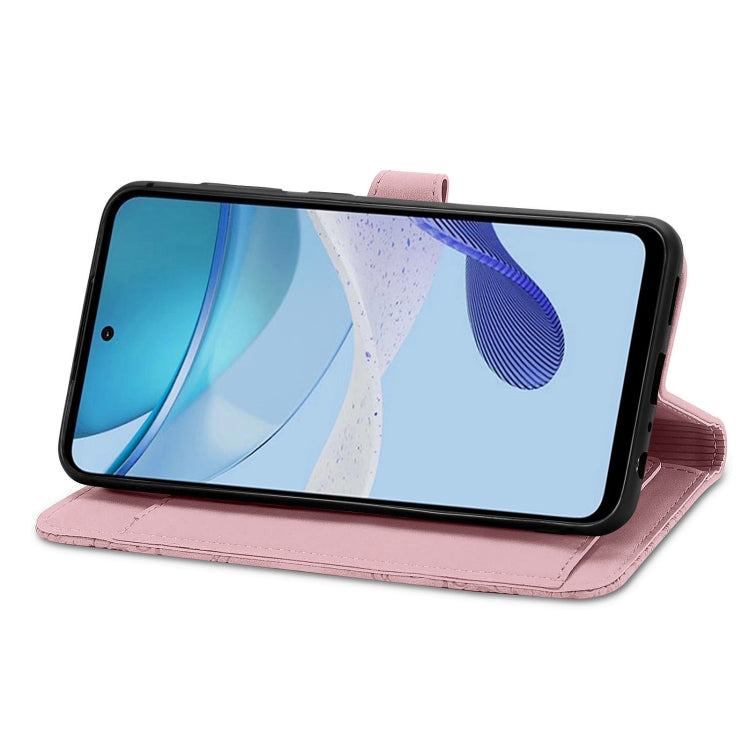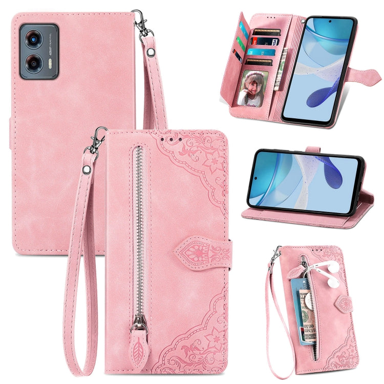 For Motorola Moto G 5G 2023 Embossed Flower Zipper Leather Phone Case(Pink)