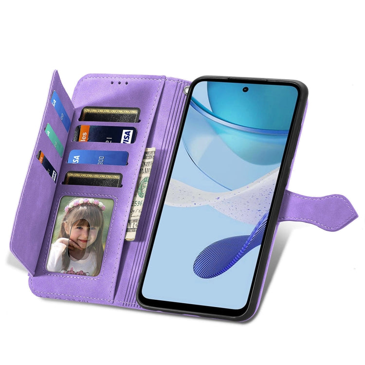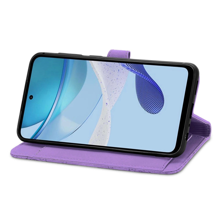 For Motorola Moto G 5G 2023 Embossed Flower Zipper Leather Phone Case(Purple)