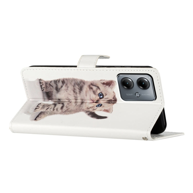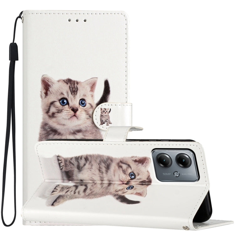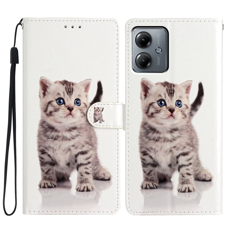 For Motorola Moto G14 Colored Drawing Leather Phone Case(Little Tabby Cat)