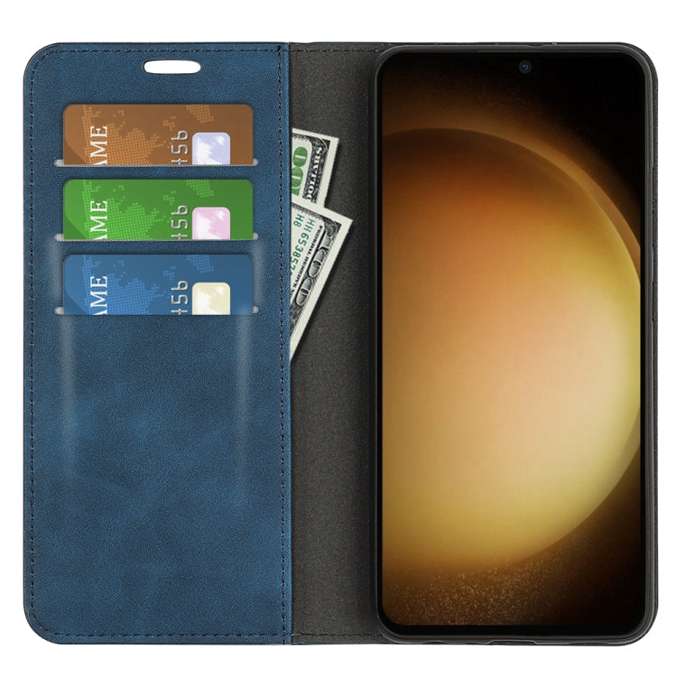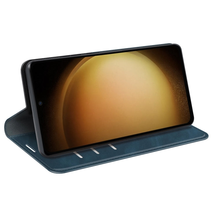 For Samsung Galaxy S24+ 5G Retro-skin Magnetic Suction Leather Phone Case(Dark Blue)