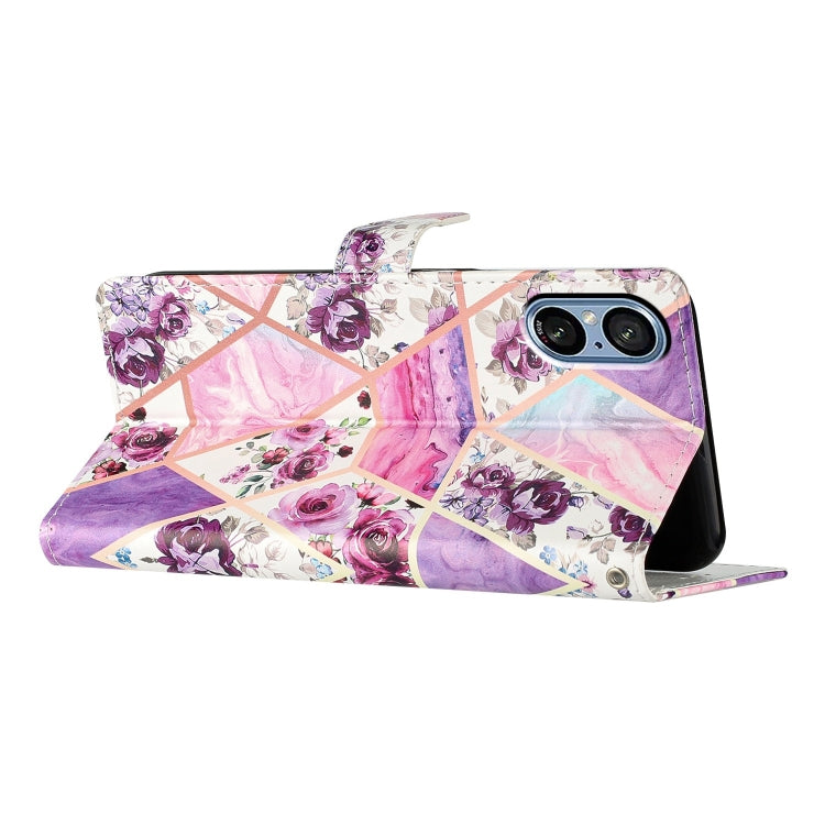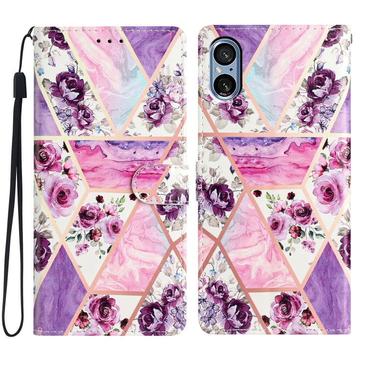 For Sony Xperia 5 V Colored Drawing Leather Phone Case(Purple Marble)