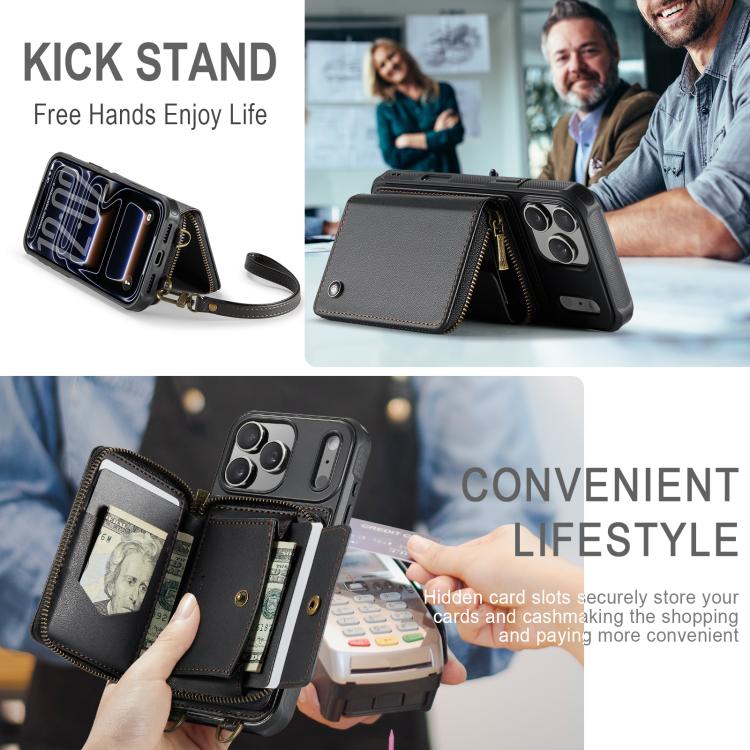 JEEHOOD C22 Series Zipper Wallet Leather Phone Case with Dual Lanyard, For iPhone 17 Pro Max, For iPhone 17 Pro, For iPhone Air, For iPhone 16 Pro Max