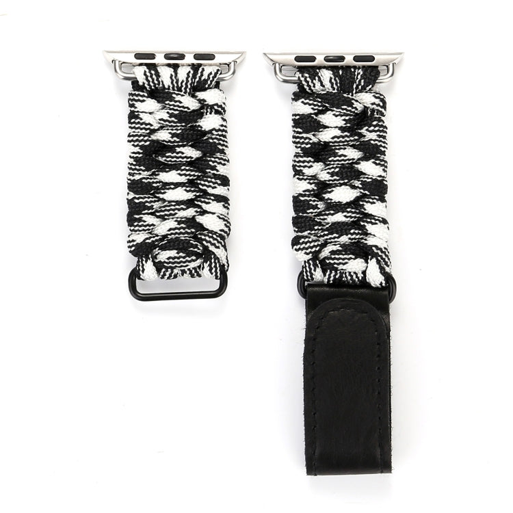 Magic Paste Genuine Leather Umbrella Rope Nylon Wrist Watch Band with and Stainless Steel Buckle for Apple Watch Series 10 42mm / 9&8&7 41mm / SE 3&SE 2&6&SE&5&4 40mm / 3&2&1 38mm, 7 41mm / 6&SE&5&4 40mm / 3&2&1 38mm